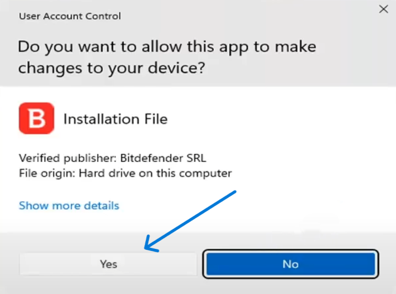 - قد تظهر لك نافذة تطلب إذنًا. تأكد من الموافقة لتبدأ عملية التثبيت.