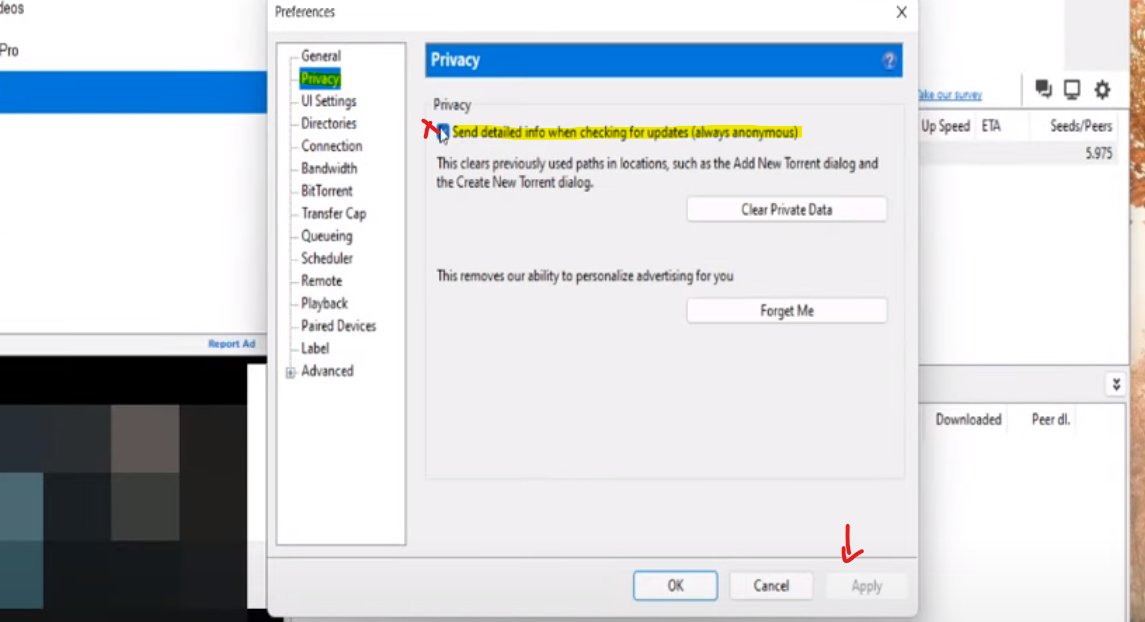 2. تكوين إعدادات التورنت