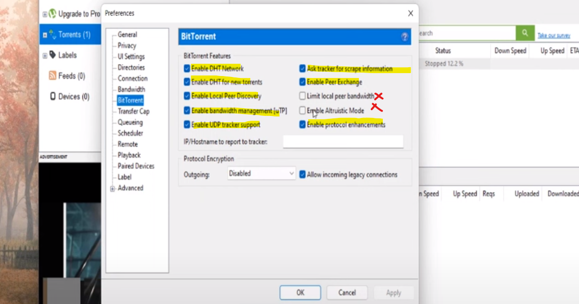 كيفية تسريع التحميل في برنامج التورنت