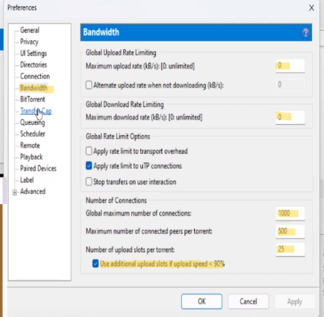 اعدادت تسريع التورنت